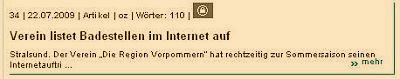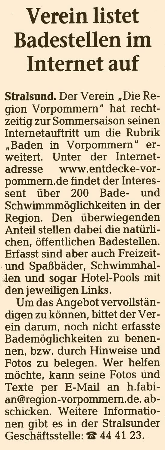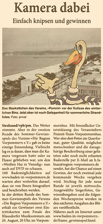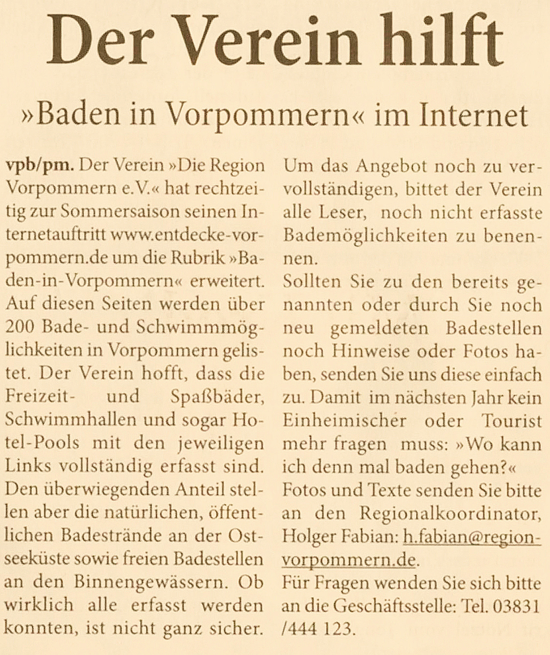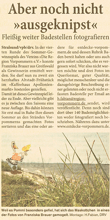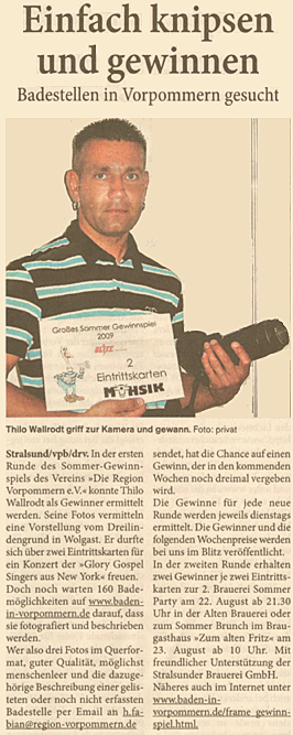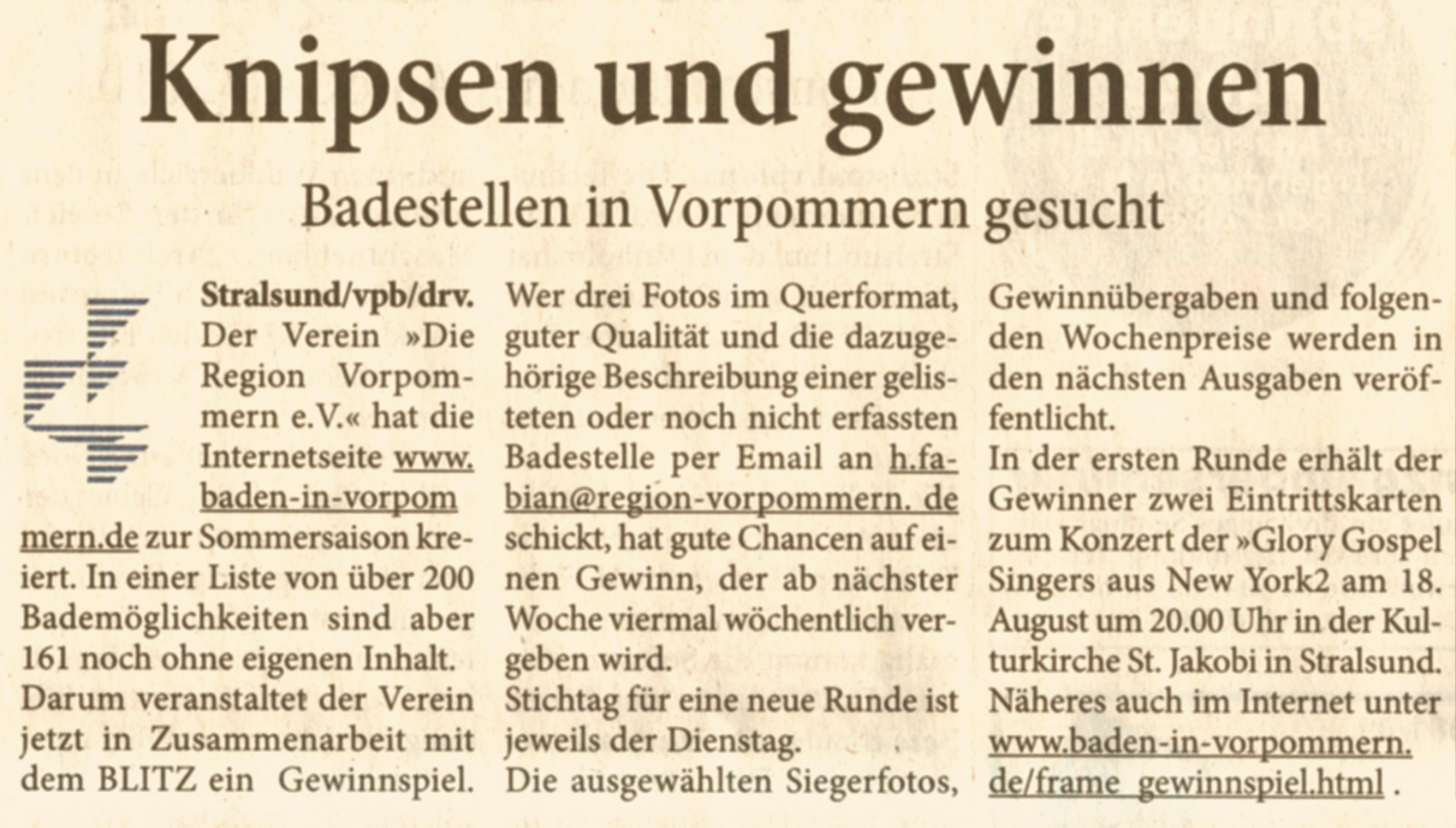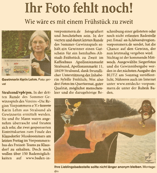 Meldung zum Gewinnspiel Baden in Vorpommern