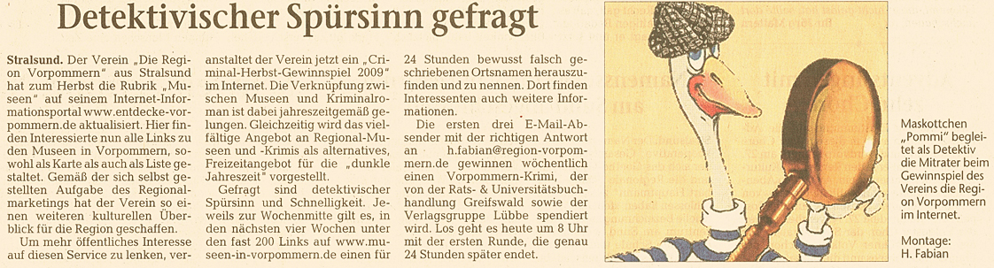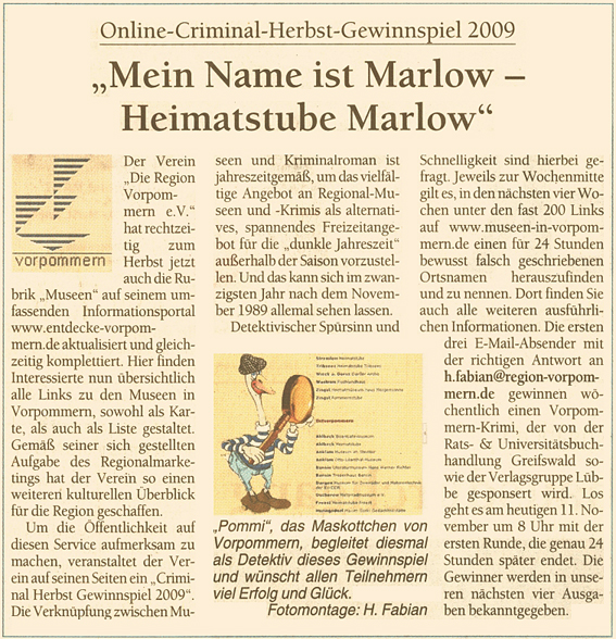 Meldung zum Gewinnspiel Museen in Vorpommern