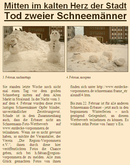 2.Meldung zum Schneemann-Foto-Wettbewerb